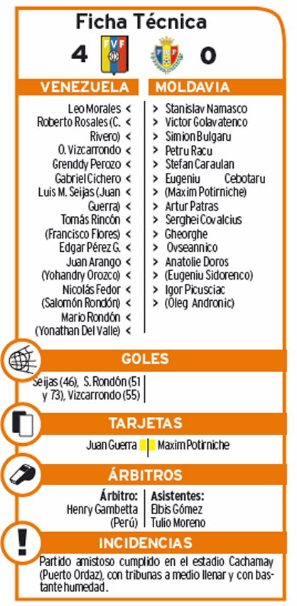 24/05/12.- La selección venezolana de fútbol se reencontró con el triunfo al vencer por goleada, 4-0, al combinado deMoldavia en el partido amistoso que cumplieron anoche en el estadio del Centro Total de Entretenimiento Cachamay, en Puerto Ordaz, estado Bolívar.