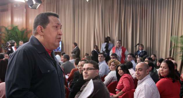 Chávez enfatizó que la estrategia central de su administración consiste en la transferencia de poder al pueblo «que es la que nos va a permitir sacar de abajo a millones de personas que estaban en el sótano, en el suelo, condenados por el capitalismo».