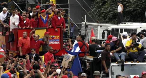 Mariara, 01 Jul. AVN.- El candidato de la patria, Hugo Chávez, fue recibido por simpatizantes de todo el país en la Plaza Bolívar de Mariara, en Carabobo, desde partió en caravana para recorrer 18 kilómetros hasta la Avenida Constitución, de Maracay, estado Aragua.