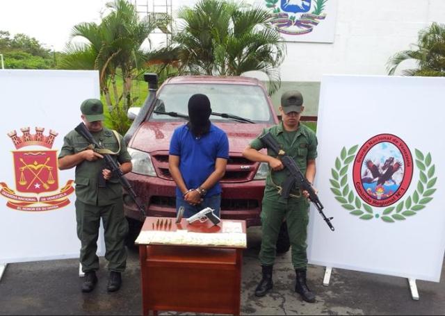 La información fue suministrada por el Cnel. Vegas Morgado, quien manifestó que en la noche de ayer, durante la implementación de los constantes operativos de seguridad para un pueblo seguro, se efectuó la detención de un ciudadano venezolano, de 26 años de edad, a quien le incautaron un arma de fuego tipo pistola, marca Taurus calibre 9 mm, sin ningún tipo de documentación que ampare su legal porte; referida arma al ser verificada por el Sistema Integrado de Información Policial (S.I.I.POL.) arrojo como resultado que la misma se encuentra solicitada ante el C.I.C.P.C. Subdelegación en el Paraíso Caracas, además se le retuvo un vehículo solicitado en la Ciudad de Barinas, marca Toyota, tipo camioneta Picukp, modelo Hilux, color rojo, posteriormente al realizarse una revisión minuciosa le fue encontrada una pistola marca Taurus, calibre 9mm, con un cargador y 17 cartuchos sin percutir, y la cantidad de Dos mil treinta bolívares (2.030) Bs.