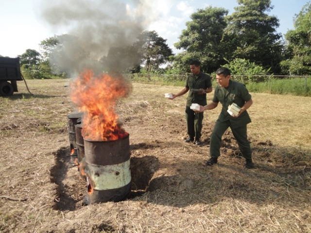 De acuerdo con la información aportada por el Cnel. Gustavo Vegas Morgado, Cmdt. del DF- 17, en el proceso de incineración realizado, de acuerdo con lo previsto en la Ley Orgánica de Drogas, fueron destruidos 114 kilos, 800 gramos de Marihuana; y 57 kilos, con 750 gramos de cocaína, al igual que todas las evidencias de cada caso.