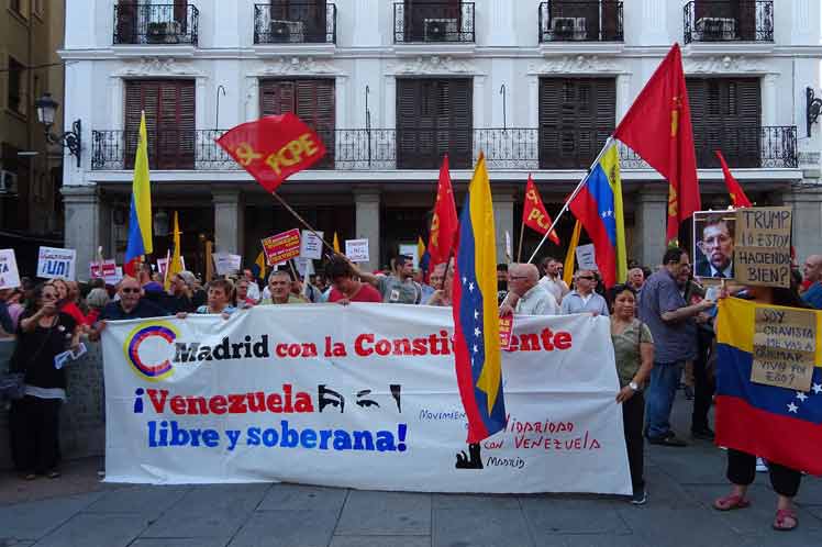Madrid, 3 ago (PL) Cientos de personas se concentraron hoy frente a la sede del Ministerio de Asuntos Exteriores de España para respaldar la decisión soberana de la República Bolivariana de Venezuela de elegir una Asamblea Nacional Constituyente (ANC).