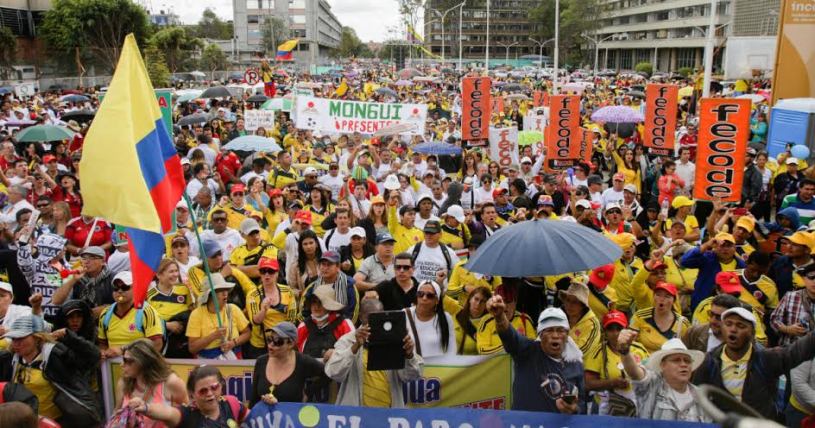 2.- En el tiempo que resta del presente año y después de analizados los importantes y extraordinarios hechos de la vida política, económica y social que se están sucediendo en el país; vamos a fortalecer la movilización social y política y para ello estamos preparando con mucho entusiasmo las MOVILIZACIONES NACIONALES DEL 14 DE SEPTIEMBRE Y 12 DE OCTUBRE, con mucha fuerza y participación social, por la defensa de la soberanía Nacional, por la paz con justicia social y contra la política neoliberal; para lograr la negociación y soluciones al pliego Nacional de peticiones presentado al Gobierno nacional por el CNU-COS en marzo del 2016, para enfrentar la corrupción en todos los niveles que se ha entronizado en el sector público y privado , a reclamar los dineros para la inversión pública y social en el presupuesto de la Nación para el 2018, para lograr una verdadera apertura democrática, cumplimiento de los acuerdos firmados con las organizaciones sociales e insurgencias, contra los asesinatos de dirigentes sindicales, sociales y políticos y contra la criminalización de la protesta social, para ganar la participación social y lograr las revocatorias de los Gobernantes corruptos, para afianzar y lograr un proceso de paz con justicia social, por la defensa del medio ambiente y contra la minería que solo favorece a las multinacionales y arrasa con el medio ambiente; apoyando las Consultas Populares proyectadas en varios Municipios del País. Por lograr las reivindicaciones que vienen levantando y luchando las organizaciones del orden Nacional, Departamental, Municipal y Sectoriales.
