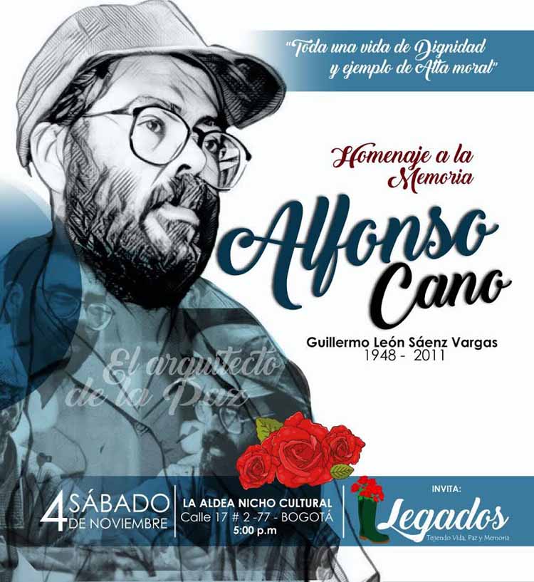 En Bogotá diversas organizaciones sociales, políticas y colectivos de solidaridad invitan a la ciudadanía a acompañar un homenaje a Alfonso Cano, comandante de las FARC, evento que tendrá lugar el sábado 4 de noviembre a partir de las 11:00 am en el cementerio El Paraíso, en la calle 80, vía a Medellín.