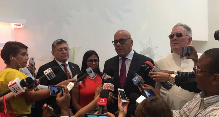 La delegación del Gobierno estará presidida por el ministro de Comunicación e Información, Jorge Rodríguez, quien ha estado acompañado en este proceso por la presidenta de la Asamblea Nacional Constituyente (ANC), Delcy Rodríguez; el ministro del Poder Popular para la Educación, Elías Jaua, y el diplomático Roy Chaderton Matos.