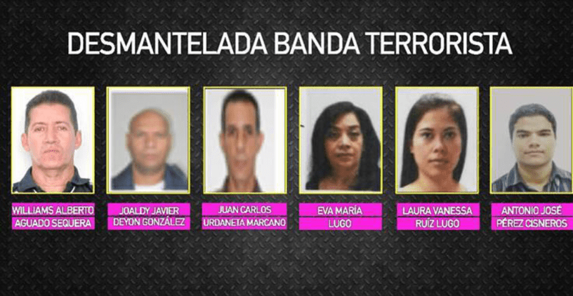 Entre los detenidos figura Joaldy Deyón y Juan Carlos Urdaneta, alias «El Tío», quienes eran encargados de proveer materiales y suministros al grupo; mientras que Eva Lugo (57 años) y Vanessa Ruiz fungían como financistas desde el exterior.