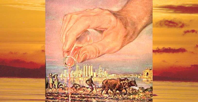 · La imagen que acompaña esta entrega es una publicidad con que la empresa Union Carbide anunciaba en 1981 la instalación de su nueva fábrica de pesticidas en la India. El texto hablaba del aporte de la empresa al desarrollo de ese país. El aviso tenía un dibujo que mostraba, en primer plano, un campesino con turbante que araba la tierra con la ayuda de un buey. El hombre y el animal avanzaban trabajosamente, con las cabezas bajas. Del otro lado de un río, se alzaba una fábrica lustrosa, símbolo de la modernidad. Y lo que después se reveló como una premonición, al modo de las profecías al revés de algunos cuentos orientales: de la fábrica salía una mano gigantesca que sostenía un enorme tubo de ensayo, cuyo contenido volcaba sobre el campesino hindú. Esta mano formaba parte de la estrategia comunicacional de la empresa y alude a la mano de Dios pintada por Miguel Ángel en el techo de la Capilla Sixtina. Sólo que Miguel Ángel pintó a Dios a escala humana, mientras que Carbide se pintó a sí misma en la que suponemos es la escala de Dios.