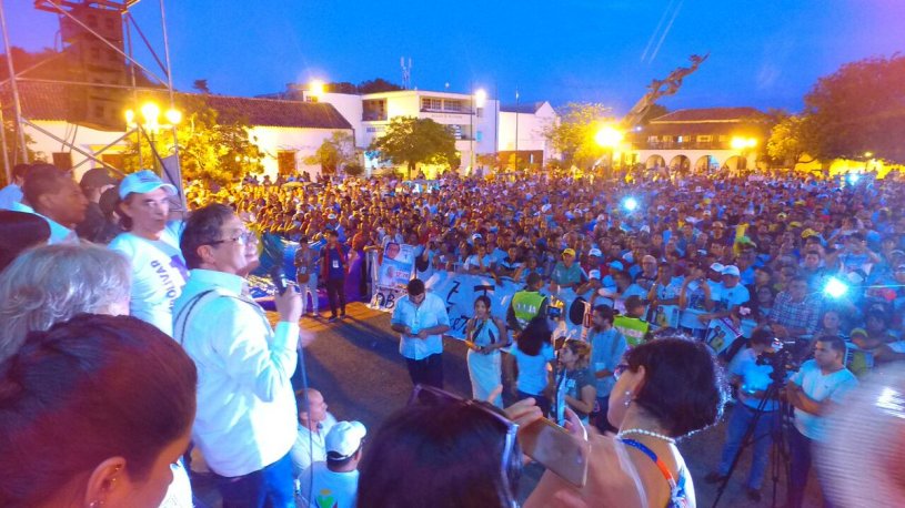 La concurrida concentración en la Plaza Alfonso López de la ciudad de Valledupar el sábado 18 de febrero de 2018 se puede apreciar en el video que adjuntamos para que los lectores admiren el acompañamiento de los niños cantantes de la música vallenata de la Escuela del Turco Gil y el impresionante apoyo de la gente a Gustavo Petro, quien habló del caribe, del Cesar y de lo que significa esta campaña para Colombia en los actuales momentos.