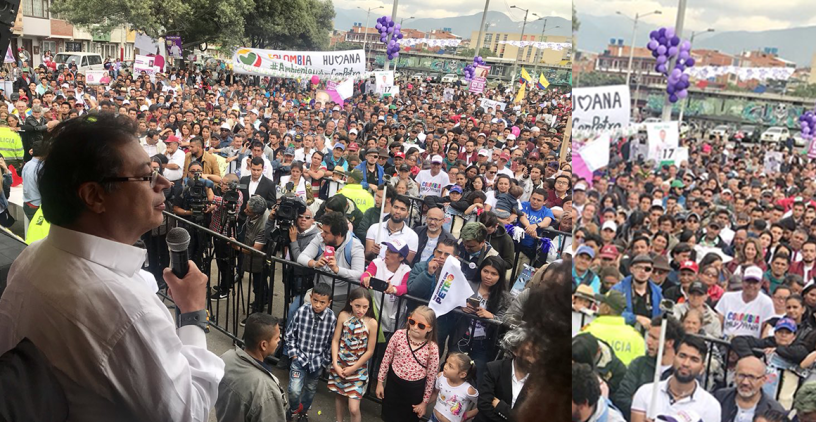 En tarima Petro fue acompañado por varios aspirantes al Congreso de la Republica como Aida Avella # 5 al Senado y Román Vega, # 105 a la Cámara por la Lista Decentes, entre otros. En su discurso el aspirante presidencial detalló sobre los sucesos de Cúcuta en los cuales su caravana fue agredida poniendo en peligro su vida y la de sus acompañantes. Relató: “Vivimos ayer en Cúcuta una actividad premeditada. No hubo nada espontaneo, fue una actividad premeditada, con un primer protagonista central y público, el alcalde de Cúcuta, cesar Rojas, que es un aliado político de Vargas Lleras y que le obedece al exalcalde parapolítico condenando por asesinato Ramiro Suarez Corso. Ellos decidieron prohibir por decreto la manifestación violando los preceptos constitucionales”.