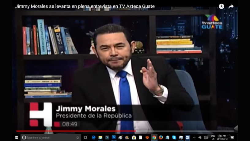 El Presidente de Guatemala, Jimmy Morales, abandona molesto el set de TV AZTECA donde acudió a una entrevista en vivo, en el marco de la campaña por el SÍ para la consulta popular del próximo 15 de abril que promueve el gobierno.