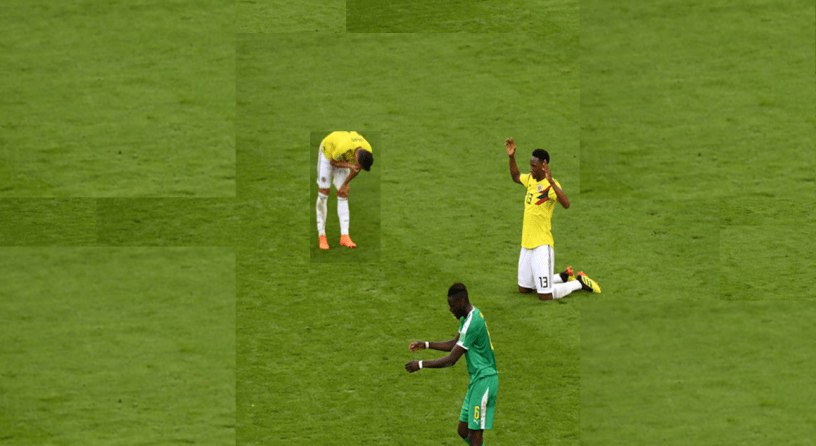Mina anotó de cabeza a los 73 minutos al aprovechar un córner Juan Guillermo Cuadrado para batir a Khadim Ndiaye y darle a los sudamericanos su segundo triunfo del certamen después de superar 3-0 a los polacos en su segunda presentación.