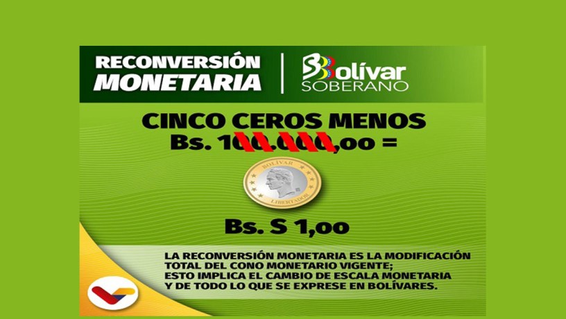 Recordemos que esta modificación de la moneda consta de la eliminación de cinco (5) ceros al actual cono monetario, con la finalidad de simplificar las transacciones, sistemas de cómputos y registros contables.