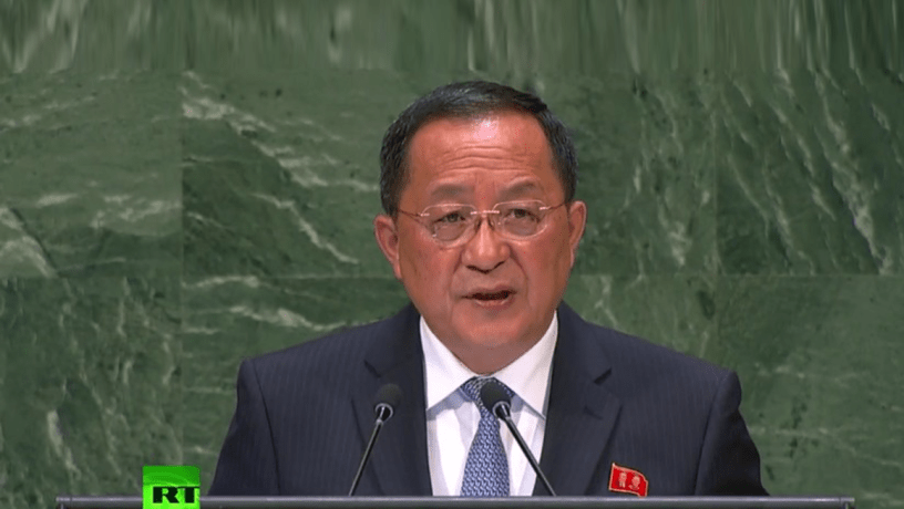 El canciller norcoreano, Ri Yong-ho, realiza su alocución en el debate general ante los jefes de Estado de Naciones Unidas