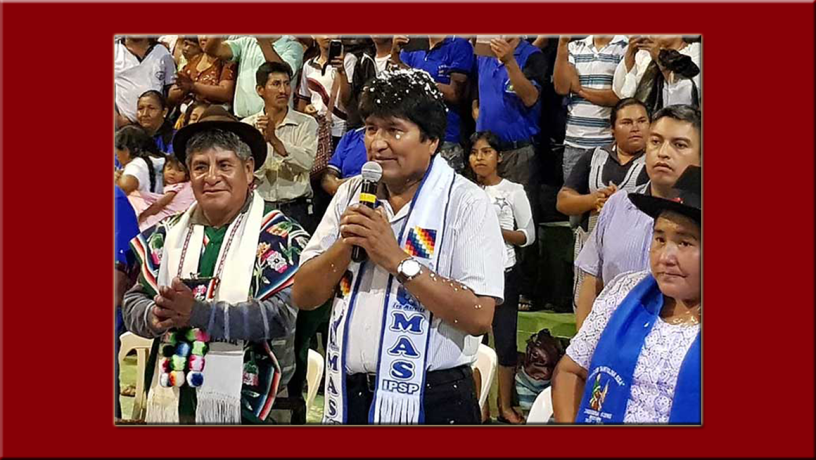 Morales aprovechó la oportunidad para destacar el apoyo de los bolivianos y bolivianas a los militantes al Movimiento al Socialismo -Instrumento Político por la Soberanía de los Pueblos- (MAS-IPSP), y agradeció a todos por el compromiso con la revolución democrática cultural en el país.
