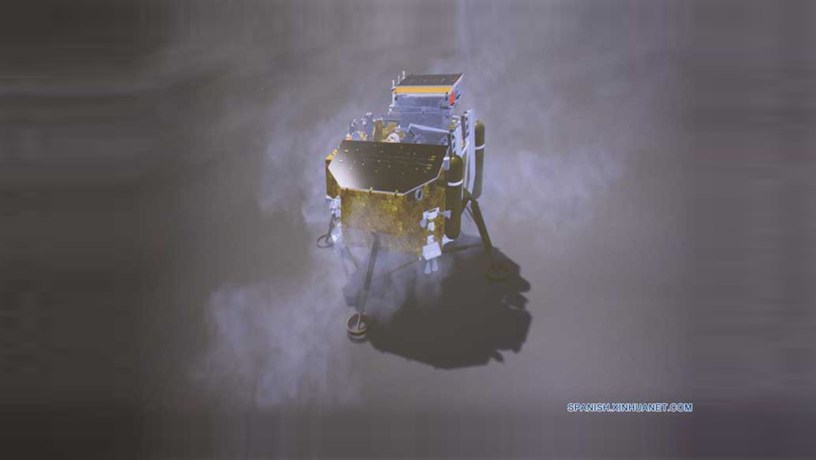 El lugar exacto del alunizaje fue el cráter Aitken Basin’s Von Karman, de 13 kilometros de profundidad, y los científicos chinos esperan que la sonda pueda tomar muestras del manto.