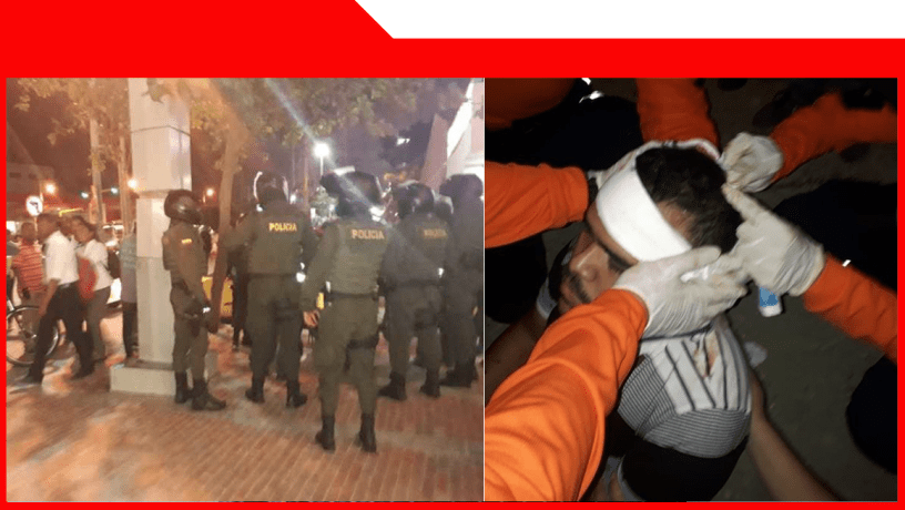 Una paradoja: cuando los estudiantes protestaban contra EL ESMAD, un piquete de esta maquina de disolver protesta popular, les atacó con violencia. La marcha realizada por los estudiantes de la Universidad de Cartagena en la defensa de la educación, el desmonte del ESMAD y en contra del Fiscal General de la Nación, fue disuelta con violencia desproporcionada a la altura de Chambacú de Cartagena, en el anochecer del 17 de enero. Hay varios detenidos y heridos.