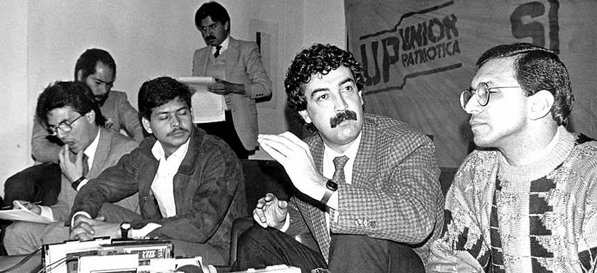 Rueda de prensa de la UP con Bernardo Jaramillo Ossa y José Antequera, luego asesinados por sicarios. / Archivo El Espectador.