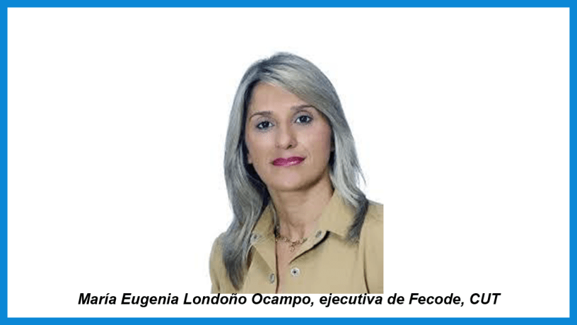 María Eugenia Londoño Ocampo, ocupa el cargo de secretaria de género, inclusión e igualdad en el Comité Ejecutivo Nacional de Fecode. Centrará sus exposiciones en el análisis del pliego de peticiones presentado por la federación FECODE y su estado actual; igualmente se analizará el agitado panorama de las luchas sociales especialmente con el apoyo y la solidaridad del magisterio a la Minga Indígena, campesina y popular con la exigencia al presidente Duque para que se atiendan sus exigencias y sus suspenda las operaciones represivas contra el derecho a la protesta en Colombia; la situación de agravamiento y drama humanitario en el país por los asesinatos contra los líderes y lideresas sociales y la preparación en el territorio nacional del gran paro nacional del próximo 25 de abril.