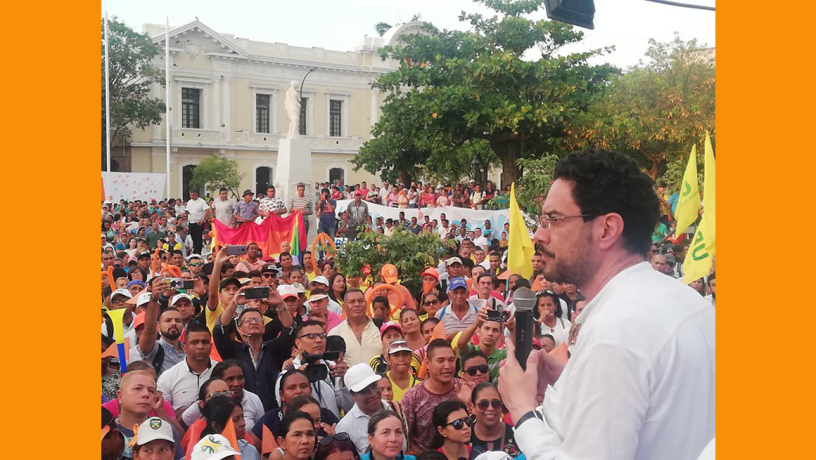 Con la participación de parlamentarios de la bancada alternativa entre ellos los senadores Iván Cepeda, Gustavo Bolívar, Antonio Sanguino, el representante a la Cámara Benedicto González, el máximo dirigente de la Fuerza Ciudadana Carlos Caicedo y por la Unión Patriótica UP, Gabriel Becerra, entre otros dirigentes regionales y nacionales, tuvo lugar en la ciudad de Santa Marta este viernes 26 de abril una apoteósica manifestación de apoyo a la administración distrital, al gobierno del dirigente y alcalde Rafael Martínez y para exigir que se suspenda de una vez por todas la persecución contra Carlos Caycedo, a quien mediante la Procuraduría trataron de inhabilitarlo políticamente durante doce años.