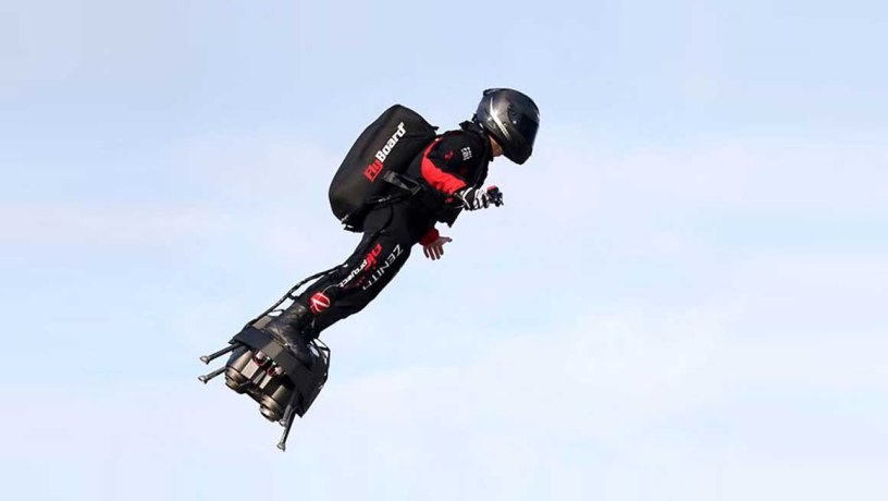 El francés demoró 20 minutos en cruzar el canal en su flyboard, equipo capaz de alcanzar los 180 kilómetros por hora.