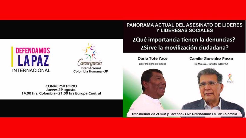 Esta conferencia se realiza orientada para ilustrar e informar a organismos en Europa que son solidarios con la lucha de las y los colombianos contra el exterminio y el terrorismo oficial. Se lleva a cabo en el marco de las actividades programadas por Defendamos La Paz Internacional y en conjunto con plataformas de organizaciones internacionales. Por lo que se invita a conectarse a la transmisión en vivo.