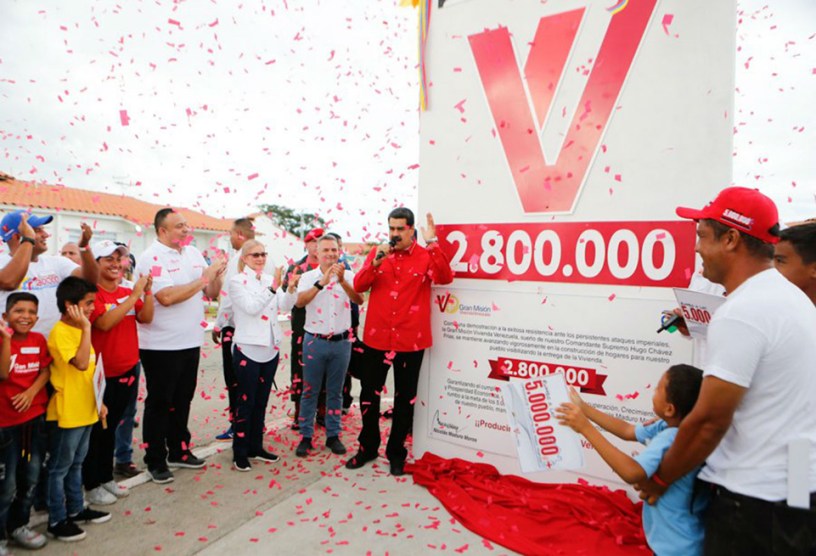 El presidente de la República Bolivariana de Venezuela, Nicolás Maduro, develó este miércoles el hito 2.800.000 viviendas construidas por la Gran Misión Vivienda Venezuela (GMVV), programa social impulsado por el comandante Hugo Chávez, en 2011.