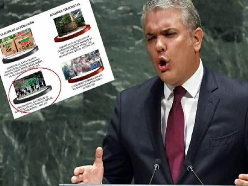 Así lo informa el órgano informativo en una nota divulgada este jueves 26 de septiembre de 2019 a propósito de varias fotos divulgadas en un documento con supuestas pruebas contra Venezuela que Duque entregó en la reunión de máximo organismo mundial.