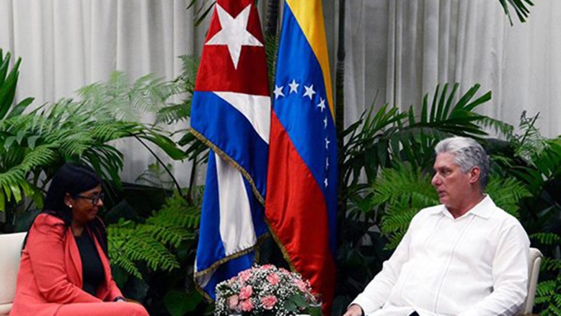 El presidente de los Consejos de Estado y de Ministros, Miguel Díaz-Canel Bermúdez, recibió en la tarde de este lunes a la vicepresidenta ejecutiva de Venezuela, Delcy Rodríguez Gómez, también secretaria general del Movimiento Somos Venezuela.