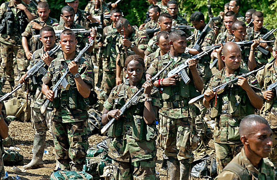 Miembros de las Autodefensas Unidas de Colombia (AUC) en el Campamento Dos en Tibú, al noreste de Bogotá, en el Norte de Santander, el 10 de diciembre de 2004. / Luis Acosta / AFP