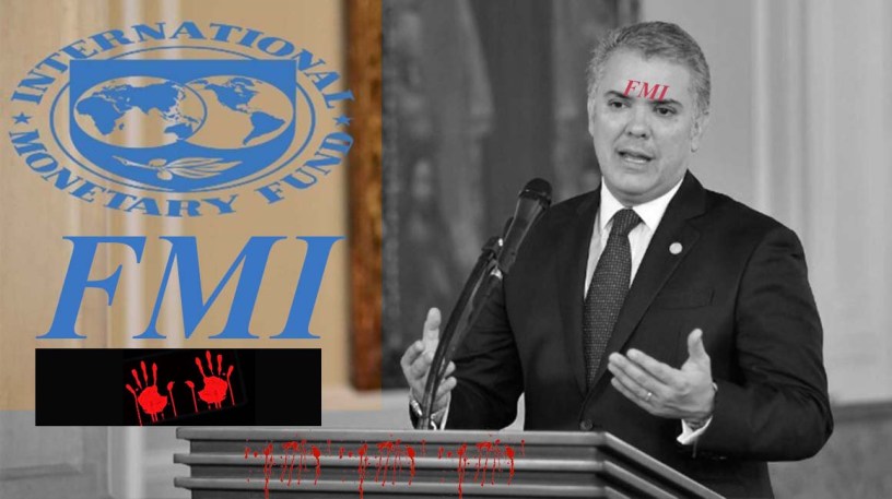 Una de las causas de toda esta campaña de presión y expectativa por parte del gobierno, magnates y organismos económicos internacionales, tiene que ver con la aprobación el pasado mes de mayo por parte del FMI de un nuevo crédito de USD 11.400 millones para el gobierno Duque, con un plazo de dos años, y que será endosado al adquirido en el 2016. El préstamo se aprobó porque el Estado colombiano cuenta de acuerdo al FMI con antecedentes sólidos y “marcos institucionales de política económica que generan confianza”, lo que se traduce en que el régimen colombiano ha sido especialmente dócil con los requerimientos de la banca internacional, a partir de la fórmula: Mínima inversión social, un muy oportuno pago de los servicios de la deuda y represión desmedida.