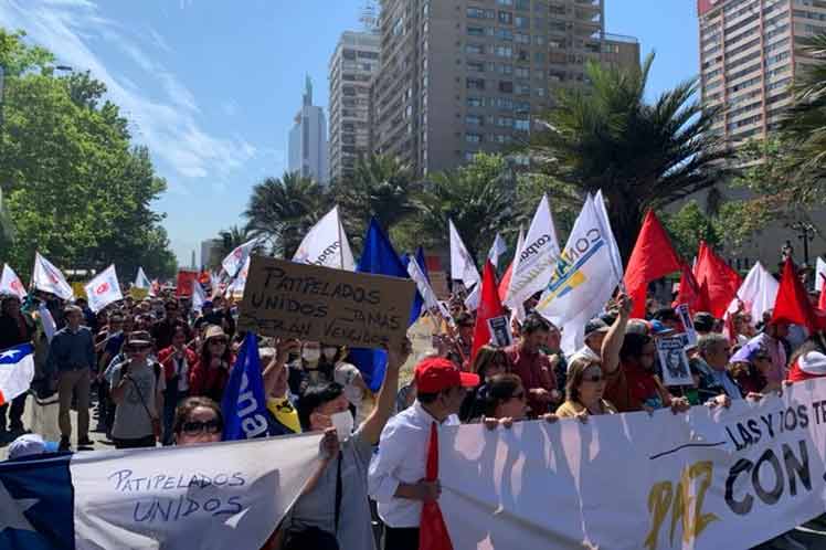 Santiago de Chile, 23 oct (Prensa Latina) Una multitudinaria marcha pacífica en el marco de la huelga general contra el gobierno de Sebastián Piñera, convocada por la Mesa de Unidad Social, arrancó hoy desde la plaza Italia en esta capital.