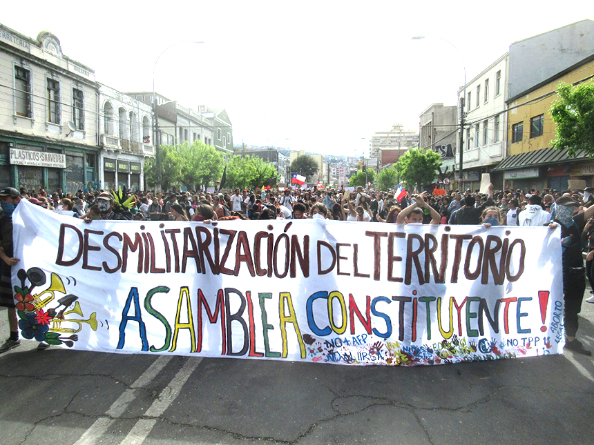 Pero esta insurrección popular sigue adelante, como aparece claramente planteado en las múltiples pancartas que explicitan por una parte el resuelto espíritu de lucha, y por otra la exigencia de renuncia de Sebastián Piñera y todo su gobierno, demandando la realización de una Asamblea Constituyente que termine con la Constitución dictatorial de 1980 y el sistema neoliberal consagrado en ella.