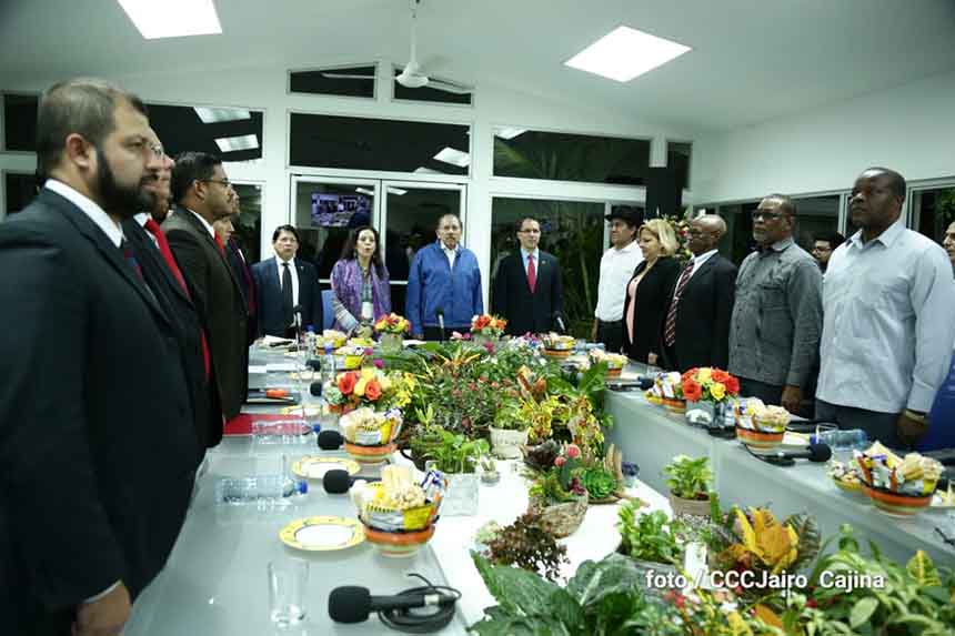 «Seguiremos luchando con la certeza de que la victoria es de los pueblos, porque somos países pequeños pero grandes en conciencia, dignidad y patriotismo”, manifestó en el encuentro, que contó con la presencia de la Vice Presidenta de Nicaragua, Compañera Rosario Murillo, y de ministros y viceministros de naciones miembros de ALBA-TCP.