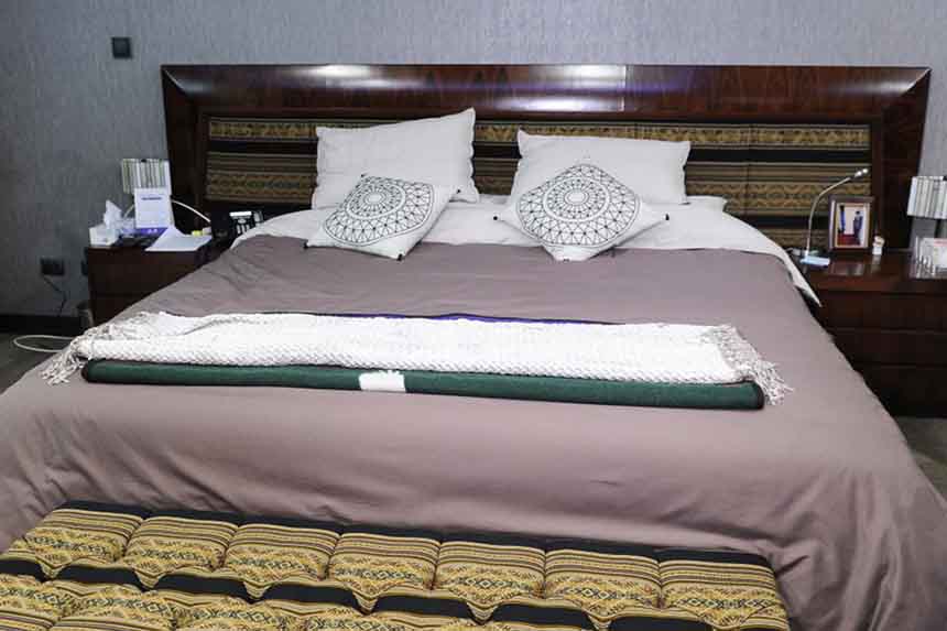 La «suntuosa» cama de la «suite presidencial» de Morales en la Casa Grande del Pueblo. Imagen: AFP