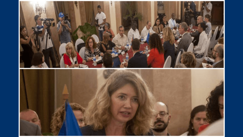 El repudio a las normas que violan el derecho y los postulados del comercio internacional se hizo público en un encuentro que se realizó entre ambas partes en virtud del Diálogo Político y de Cooperación concertado entre Cuba y la Unión Europea en 2016 y puesto en vigor, de manera provisional, en 2017.