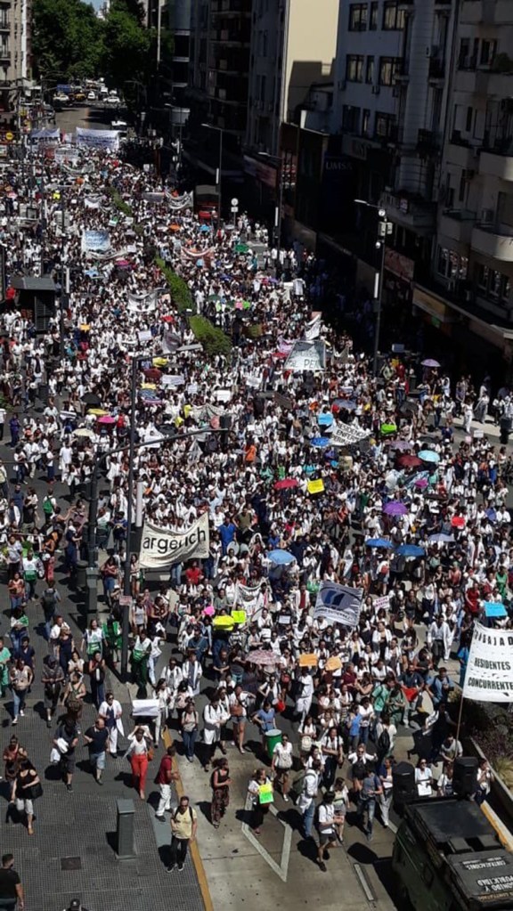 Junto a un video que su subió a su cuenta de Twitter, el médico cardiólogo reflexionó: “¿Vos te subirías a un micro si el chofer viajó toda la noche? NO. Pero podés llegar a operarte con un médico que no durmió. Son médicos trabajadores de la salud”. Y explicó que sin formación médica no hay futuro y que podría detener el sistema de salud. “Reprimir a médicos que reclaman sus derechos es atentar a futuro. Si sos médico y te quedas callado es que no tenes idea qué es ser residente, por ende no tenés formación”, alertó.