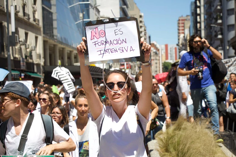 “Este proyecto cristaliza un régimen de sobreexplotación laboral, es decir, que existe en la actualidad, pero que ahora es revestido por la ley. Entre otras cosas, impone un régimen de sanciones que permite echar médicos por ‘incumplimento moral’, algo muy difuso que puede usarse arbitrariamente”, comentó a Télam una de las profesionales movilizadas.