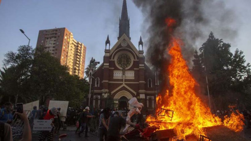 A cuadras de allí, encapuchados provocaron un incendio en la parte trasera y los alrededores de la iglesia San Francisco de Borja, destinada a los servicios religiosos del cuerpo de Carabineros.