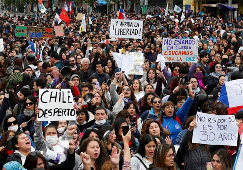 El otro ámbito interesante es que cada día es una experiencia que para ellos es un proceso cognitivo también espectacular porque esto partió por 30 pesos (la lucha original por la subida del precio del Metro), fue aparejado con una serie de actividades, que era la marcha y el enfrentarse con la Policía, pero empezó a generar actividades culturales necesarias en lo que significa la guerra que es que el espíritu también tiene su espacio, su momento.