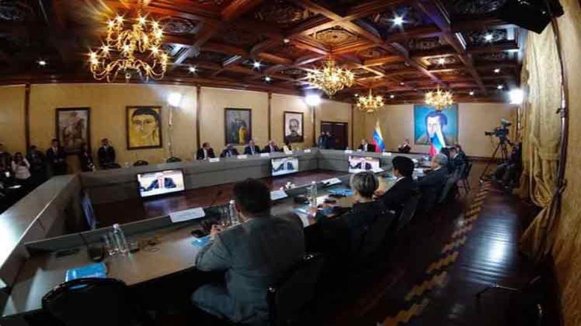 ‘Esta Mesa de Diálogo Nacional avanza en los seis acuerdos firmados hace menos de un año, en los cuales nos comprometimos a establecer la ruta para el cambio en paz y bajo los parámetros establecidos en nuestra Carta Magna’, expresaba la víspera el vicepresidente de Comunicación, Cultura y Turismo, Jorge Rodríguez.