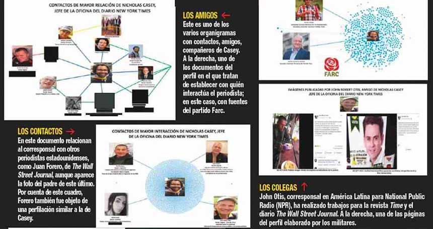 Mientras exponían sus argumentos ante los jefes de Casey, en Colombia los militares monitoreaban los pasos de ese periodista en el país en una carpeta donde tenían sus contactos, algunas fuentes y las personas con las que se relacionaba, e incluso aparecen sus propios editores de Nueva York.