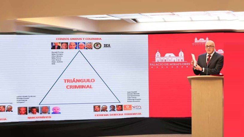 Detalló que en uno de los vértices de este triángulo se encuentra el presidente norteamericano Donald Trump, junto al vicepresidente Mike Pence; el secretario de Estado, Mike Pompeo; el enviado especial Elliot Abrams, el Departamento de Justicia, la Agencia para el Control de Drogas (DEA) y empresas de seguridad estadounidenses, como Silvercorp.