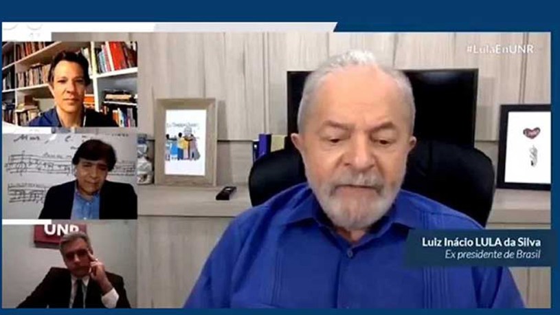 ‘Éste es un reconocimiento a mi persona, pero fundamentalmente a la lucha del pueblo brasileño, a la democracia y la justicia social’, afirmó Lula tras agradecer el galardón que se le entregó virtualmente al comienzo de la charla con el rector de la UNR, Franco Bartolacci.