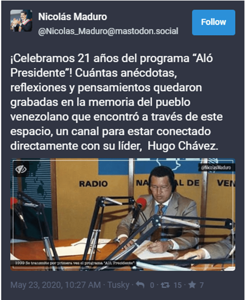 El presidente de la República Bolivariana de Venezuela, Nicolás Maduro, celebró este sábado los 21 años de la primera edición del programa “Aló Presidente”, un espacio conducido por el Comandante Eterno Hugo Chávez, creado con la intención de establecer un contacto directo con el pueblo venezolano.