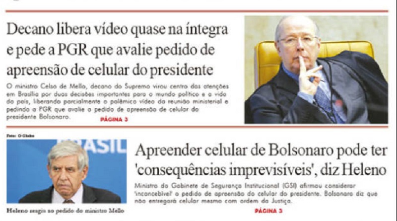 El juez del Supremo Tribunal Federal (STF) de Brasil, Celso de Mello, determinó este viernes la publicación del video, grabado presuntamente por el exjuez y ex ministro Sergio Moro, en el que el mandatario refiere en forma soberbia su voluntad de cambiar a las autoridades de la Policía Federal (PF) para “proteger a su familia”, según el reporte de RT.