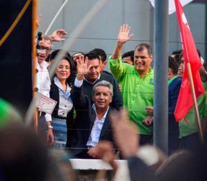Lenin Voltaire Moreno Garcés, quien había sido durante los primeros 6 años de gobierno vicepresidente de Correa y los 4 años posteriores (financiado por el gobierno ecuatoriano) relator especial de las Naciones Unidas para las discapacidades en Ginebra, quién gozaba de simpatía por el trabajo realizado en diversas campañas de tinte social especialmente ligada a los Derechos Humanos y a las discapacidades. Vale mencionar que Moreno fue -por la voluntad política de Rafael Correa- protagonista de la campaña gubernamental construida en torno a la “Misión Solidaria Manuela Espejo”, que atendió a las personas con discapacidad del Ecuador, y que se convertiría en un ícono de los Derechos Humanos a ser replicada por diferentes países del mundo.