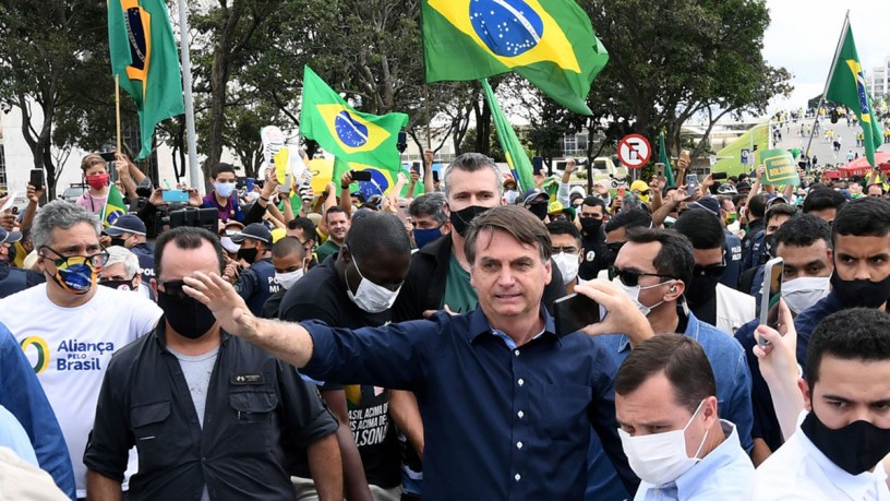 El presidente de Brasil, Jair Bolsonaro, saluda a sus seguidores a su llegada al Palacio de Planalto en Brasilia, el 24 de mayo de 2020.Evaristo SA / AFP