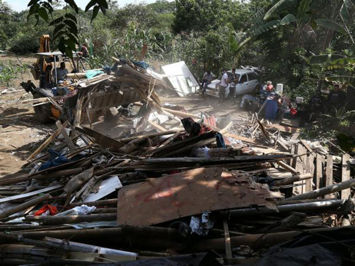 Con máquinas y fuerza policial, se destruyeron cambuches y en medio de una pertinaz llovizna y el frío, numerosas familias, con muchos niños, quedaron a la intemperie mientras que sus esperanzas caían en medio de la gritería para que se fueran. En su mayoría, son indígenas.