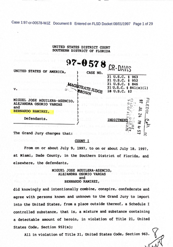 La acusación estuvo a cargo de la Fiscalía Federal para el Distrito Sur de la Florida y el juicio se llevó ante la Corte Federal del mismo distrito.