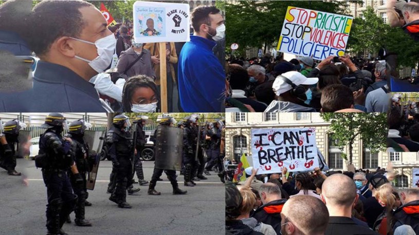 Los movilizados portaron pancartas en homenaje al afronorteamericano George Floyd, asesinado en Minneapolis el 25 de mayo por un policía blanco, y al joven negro Adama Traoré, quien falleció hace cuatro años bajo custodia de la Gendarmería de Persan, localidad de la Región Parisina, casos entre los que se ha establecido aquí un paralelismo.